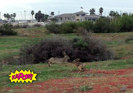 Apparently Coronado in addition to Shamu, Navy Seals, Navy Dolphins (trained for underwater mine location), it is a Rabbit Mecca. At the first rabbit (and I thought only) spotting, I was so excited at this seeming rare event Whoa, was I wrong. There are rabbits every. where. – notable for those with white fluffy tails and those with long legs and periscope ears (hares or jack rabbits). With all the copious rabbits sitting around being cute prey (and an innate sense of when to dart to avoid photos by moi, the bunny paparazzi), they were hard to get good pictures. I suggest the site The World is Raw’s post on these Coronado Hares for good close ups and more information about their role in the area’s history. I did however, observe a rabbit fight, over what I presuming was over a girl bunny. Funny stuff-they make a snorty hissy sound. Lastly, with an open mind, it tends to wander. Where did mine go? Straight to the Navy. I am imagining that these rabbits must have lasers attached to them or other spy technology, like night vision or recording devices. All of this designed to keep our coasts safe from pirates and alert the guards with guns of when I get to close the Navy property line…..