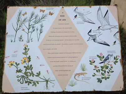 “Like migrating birds, we stop here to [rest?, rusty spot, maybe bullet hole J]. As creators of this habitat, how can our continued involvement protect and restores the remaining coastal open spaces?” My translation and application of this State Park sign: “As creators of this life today, how can our continued engagement fullfill and restore the remaining open spaces our mind?”