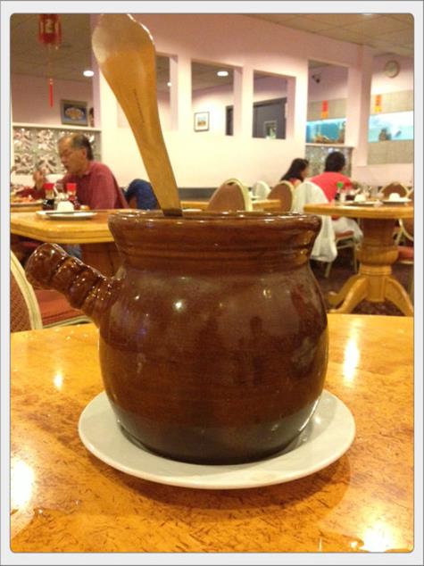 - Honey Court served a nice aperitif – broth, in what sort looks like a honeypot … hmmmm