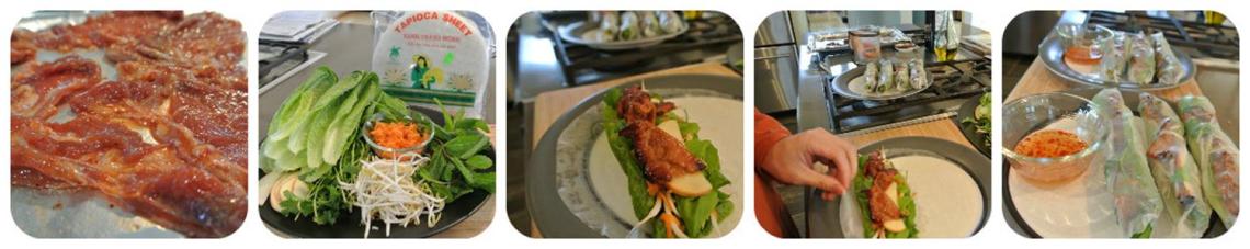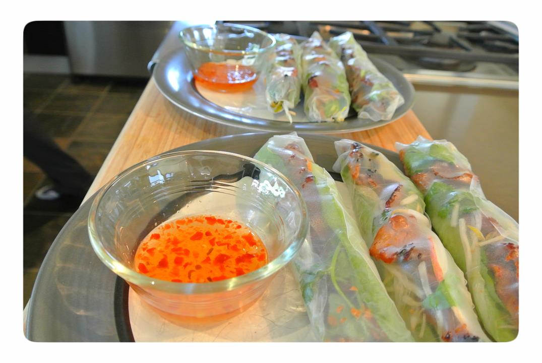 Still not the most outrageous thing to be rolled up in a tapioca rice wrapper but does cross some international borders. For detailed instructions and tutorial on wrapping with rice paper please visit this blog post.