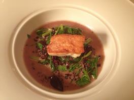 Smoked Steelhead –Cheore Mousse, Nori Tuile, Citrus Vinaigrette (cute little leaf = miner’s lettuce, made a few appearances)