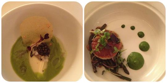 Mollusk highlights: 1)Fava Bean Soup, Kusshi Oyster, White Sturgeon Caviar, Artichoke Mousse 2)Scallops, asparagus tips, arugula puree 3) oysters in the half-shell (W&C) 4) Fried oysters (we paired them up with donuts and invented the new chicken n’ waffle!)