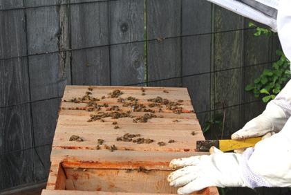 Today the work is similar. I didn’t have these hives named, so for fun this year, I will go with Florence and Betty (runner up names from the Peepstakes!). My queen cages came out easily and didn’t have comb all around them, the feeders were empty and came out. I left them in the yard till the bees cleared themselves off and went home for the night. There was some burr come in both but Machine had some comb with quite a bit of larvae on it. I took a close look and it didn’t appear to be queen cells (thank goodness, no swarm please!) but more like drones and workers. I carefully scraped it off, although the collective hive got louder (aka agitated) when I did this. The key is just move slow and steady…. I did feel a bee or two head butt me but no stings this time around.