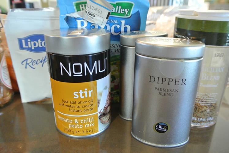 Dippers (including ranch dressing mix powder – just mix it with yogurt, sour cream or cottage for tasty dip). Was able to combine some of the olive oil seasons, since they were the same (e.g. Parmesan blend) or darn close enough.