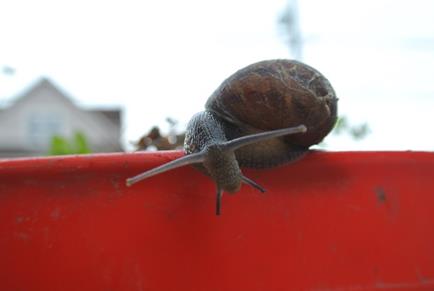 Today my weapons are my hands and the weed killer. At my side is my trusty steed, Snail. I’ll try Preen later as it started raining on me and I was hungry for lunch. Snail ended up guarding the yard waste bin when we were all done.