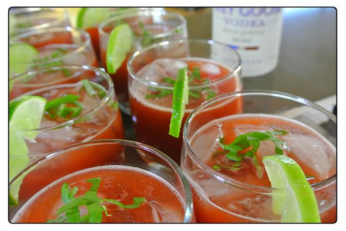 - Chill, serve over ice with some basil ribbons and lime slice. I think an orange would be delightful too. Add vodka if you like. I enjoy hanging out with my friend Gray Goose.
