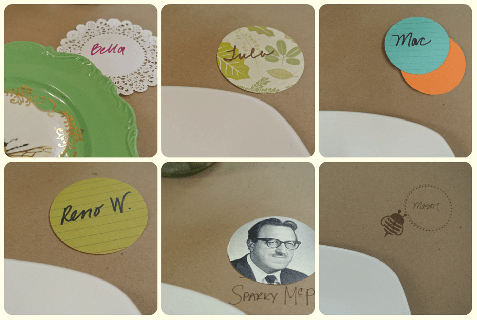 These place card ideas could be used on almost any set table or even as gift tags and are a great way to upcycle paper items. Use them to help people chose a chair, label dishes or include messages.