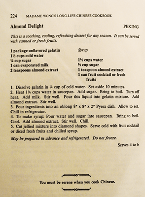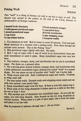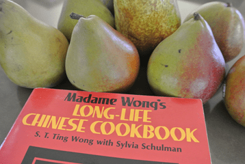 Many of you have heard my rant before about Asian desserts and also know that I love old school cookbooks and recipes. Madame Wong’s Long-Life Chinese Cookbook (1977) is a more recent edition to my cookshelf and happens to have one of the shortest dessert chapters ever. Featured alongside recipes for Almond Delight (extract flavored gelatin), Eight Precious Pudding (good luck for sure), Peking Wall (dried fruit and nuts stacked like a wall) and Red-in-Snow Mousse (sounds communist and involves crab apples) is Steamed Pears.