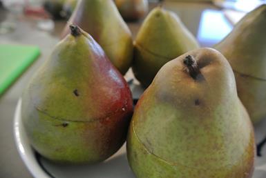 These were quite tasty. For pears, since I canned up all my Asian pears (and they would probably be too watery and crisp for this), I used Bosc and a random Velveteen pear.