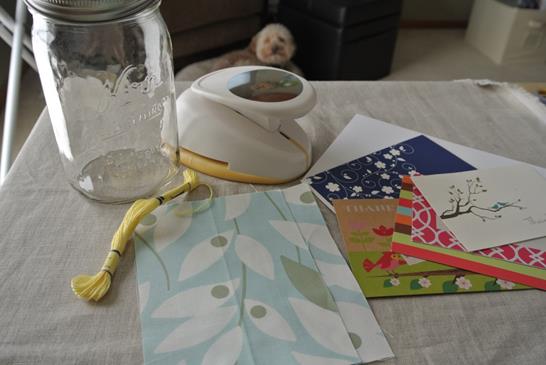 • Collect your cards and papers. I use mostly thank you cards but will be adding in other cards, post cards, invitations etc. This is a nice way to keep a card or memory alive. I might even have some wedding cards stored away somewhere that will need to get repurposed.