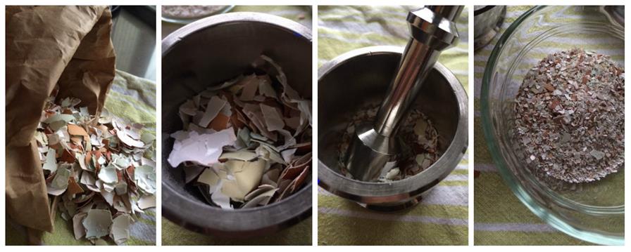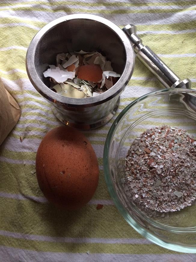 - Grind the shells – not only so that it is easy for the hens to swallow but you do not want the shells to resemble eggs. This might increase your risk of your hens turning into egg crackers! Consider dedicating a grinder to the task (pick one up at second hand store) and only grind dried shells. I prefer to use a mortar and pestle (can’t help it is in my blood) and it is easier to wash!
