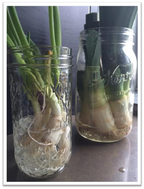 - Save the bottom, bulb portion from your kitchen scrap pile, I trim off most of the green portion, so that the plant can focus its energy on sprouting roots, not feeding leaves.