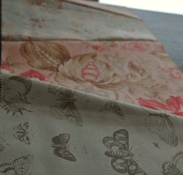 Papillon Afternoon is inspired by a sleepy dog (I spy….) and a simple pattern in one of my Lintott quilting books for precut collections, titled “Tumblers”, that I modified a bit, particularly the angle is more dramatic (leaves bigger scraps for its 2nd iteration) and three borders to really highlight my favorite print from the Moda Papillon line. Layers cakes are great, especially if you love to just nibble on the whole line. They are easy to work worth and there lots of patterns designed around them. However, they are in no way necessary. For this pattern, I would suggest if you are not using a layer cake to first cut the fabric in to the layer cake square size (10 x 10 inches) and then trim to the trapezoid shape. This is a pretty easy quilt pattern, perfect for beginners. You can adjust the size by adding larger, smaller or fewer borders.