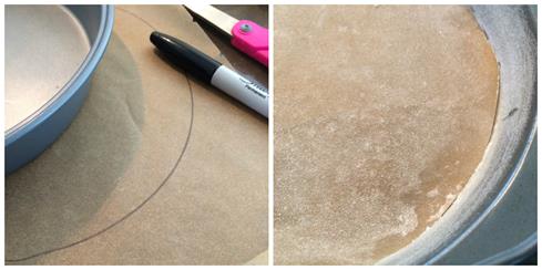 - Preheat oven to 350 F. Decide which kind of pan you are going to use. If making a layer cake, prepare two 9 inch round cake pans by greasing (I use shortening) and flouring the bottom and sides. Then trace the bottom of the pan and cut out two circles a touch smaller than the pan. Grease and flour one side of the paper and place floured side up in the pan. Be sure to tap out any extra flour in the pans.