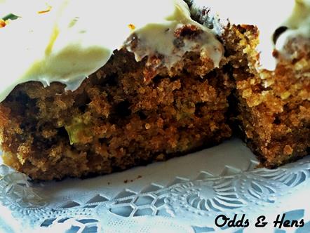 Definitely the favorite of my two rhubarb desserts this year, next I might try something savory, but for now I present to you my recipe for Rhubarb Apple Fig Cake with Sour Cream White Chocolate Frosting. Based off of the general recipe I devised for carrot cake. This recipe is pretty forgiving in terms of volume of rhubarb, apples and figs that you add, so do not stress out. It will turn out oh so moist and delicious. The cake was cut up and served pretty quickly with the remaining delivered to neighbors. The recipe works great as cupcakes (makes ~ 24), layer cake, sheet or Bundt cake – pick your pan!