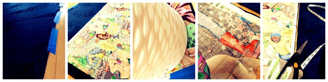 - Lay out your back fabric RIGHT SIDE UP on a very large table or hard surface (floor). Tape it down on all four sides, pulling it nice and taught, smoothing out all wrinkles.