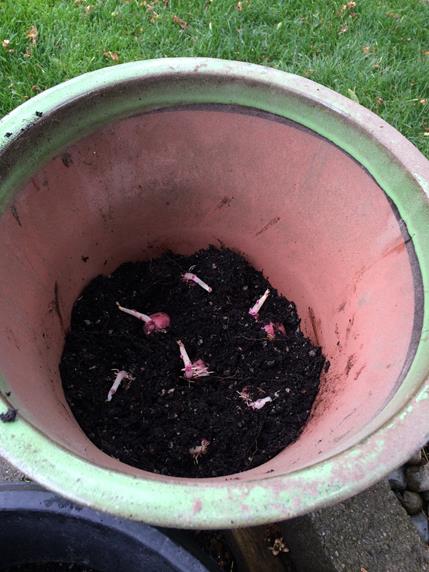 Also planted them in a green ceramic pot, sprout/eye side up.