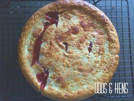 - I baked it with a double crust (bottom and top). Before putting in the oven coat the top crust with a little bit of cream and sprinkle with some cardamom and sugar. Make a few slits and bake at 425 for about 45 minutes. Halfway through you will need to cover the edges with tinfoil so they do not burn.