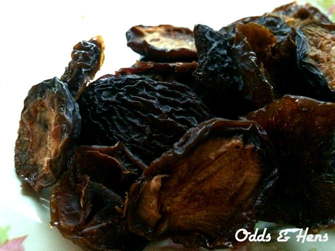Other tip for drying plums (that I did not do) is to place them skin side down for easier removal. In addition, you can pretreat the fruit with lemon juice. I did not this time around to no apparent detriment.