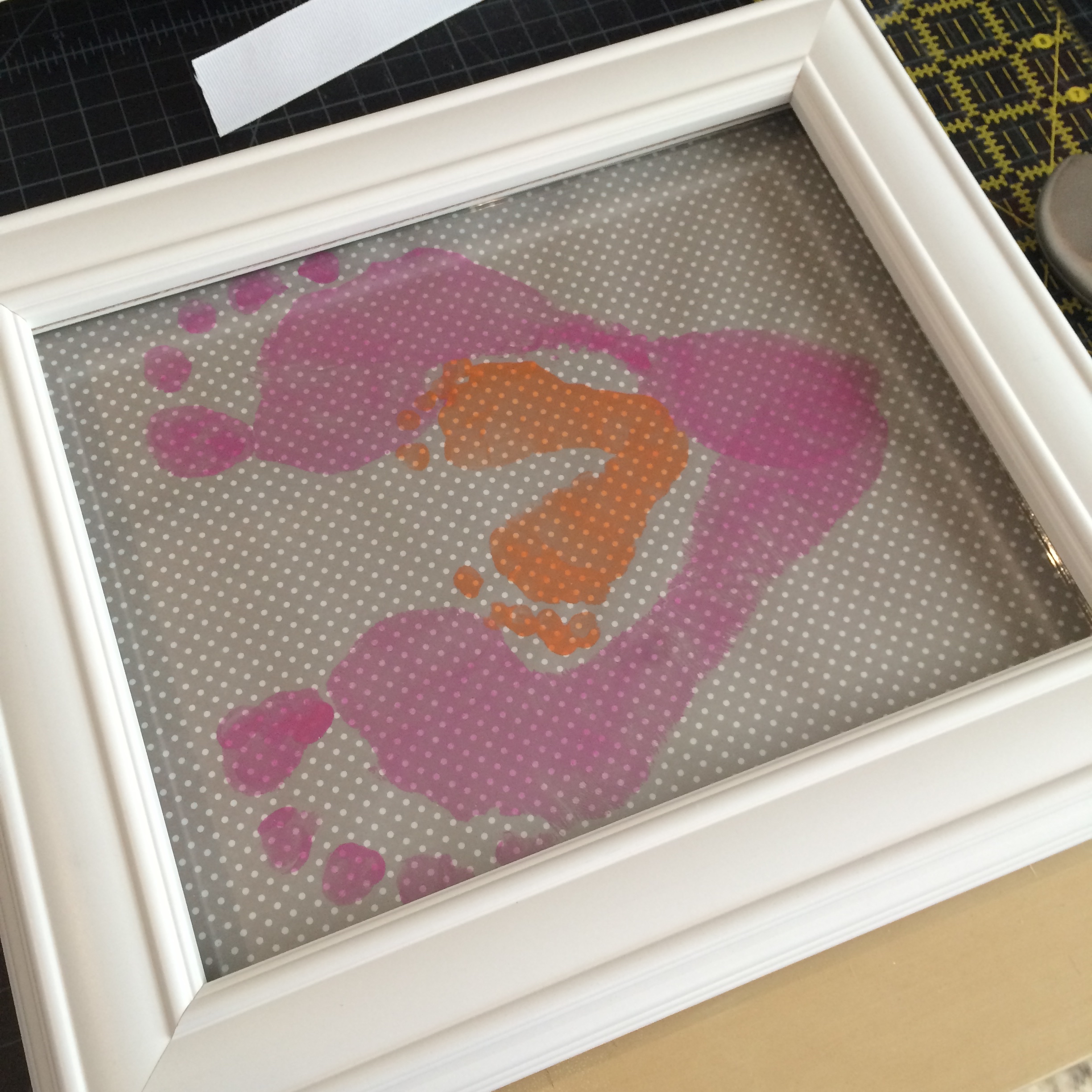 - Rather than dip the foot into a plate of paint, I found sponging it on with a brush applied just enough to make a good mark. Reapply after each print for a similar color intensity.