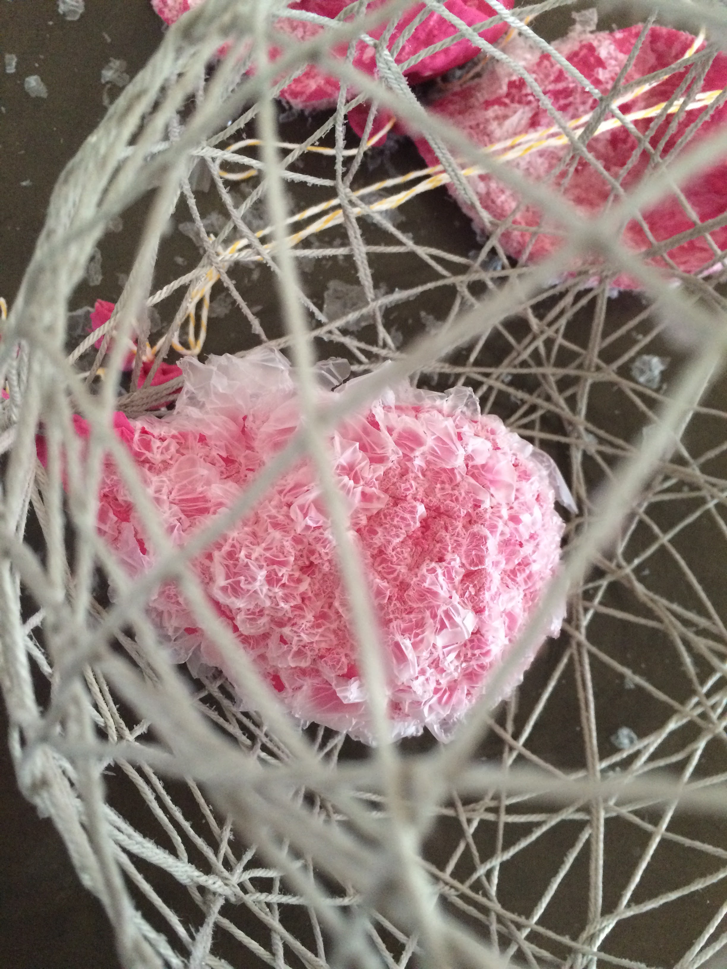 Now start wrapping! I suggest winding the wet twine atorun the balloon the long way, slowly moving and criss-crossing etc. Do as much of this or as little but I found about a half to one inch average open space worked the best.