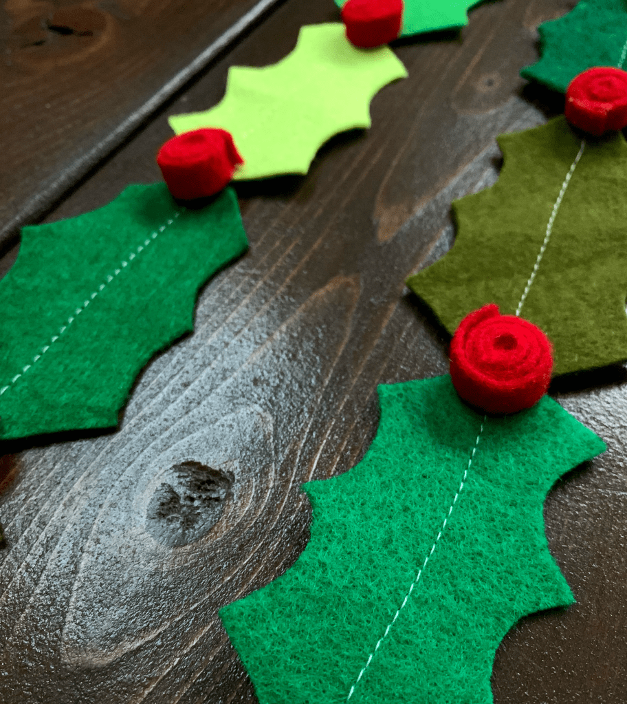 - Once holly leaves are sewn together, your holly berries should be dried and ready to be attached to garland. Note the berries also will cover any funny business/flaws.