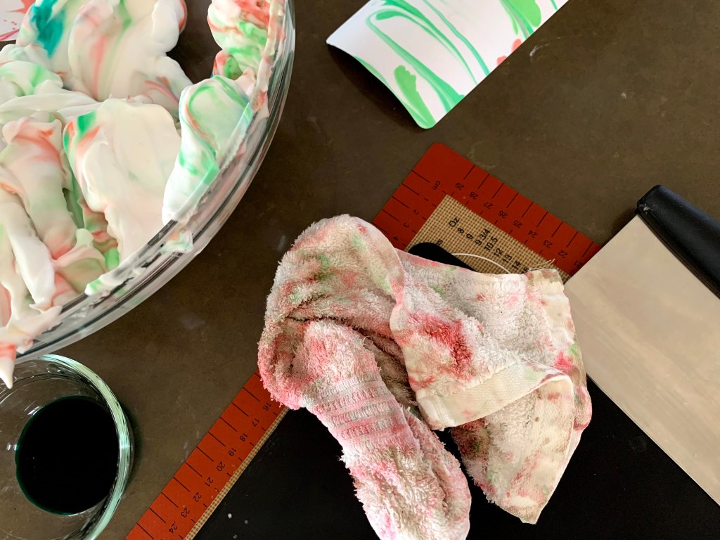 - Scrape off the foam and reveal the design. I did the scraping on a silicone mat but a counter or cutting board etc will work, just watch the dye.